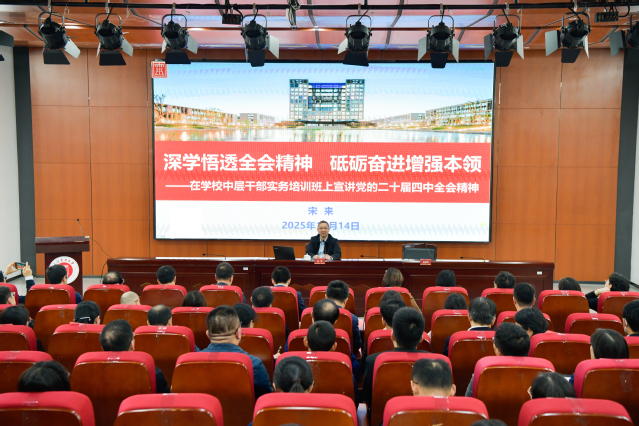 培训班上,宋来以“深学悟透全会精神,砥砺奋进增强本领”为主题,分别围绕“深入学习宣传贯彻党的二十届四中全会精神、深刻领会习近平总书记对干部能力本领的明确要求、聚力锻造高素质干部队伍推动学校高质量发展”三个方面展开授课,精准解读了党的二十届四中全会精神核心要义,激励全体干部以新视角把握精神实质、以新思路破解实践难题、以新举措推动贯彻落实,让全会精神真正转化为奋进新征程的强大动力。同时,深刻阐释了习近平总书记心中“好干部”标准、党员干部必备的八项本领、七种能力和八种工作方法,围绕加强干部队伍建设、落实改革发展任务,对全体中层干部提出五点要求:一是提高政治站位,自觉做党的创新理论的笃信笃行者。二是提高“政治三力”,自觉做对党忠诚老实的模范践行者。三是锤炼工作作风,自觉做矢志为民造福的无私奉献者。四是强化使命担当,自觉做勇于担当作为的不懈奋斗者。五是严守纪律规矩,自觉做良好政治生态的有力促进者。他要求全体中层干部以党的二十届四中全会精神为指引,为加快建成能源电力优势突出、行业特色鲜明的一流应用型大学而努力奋斗。
